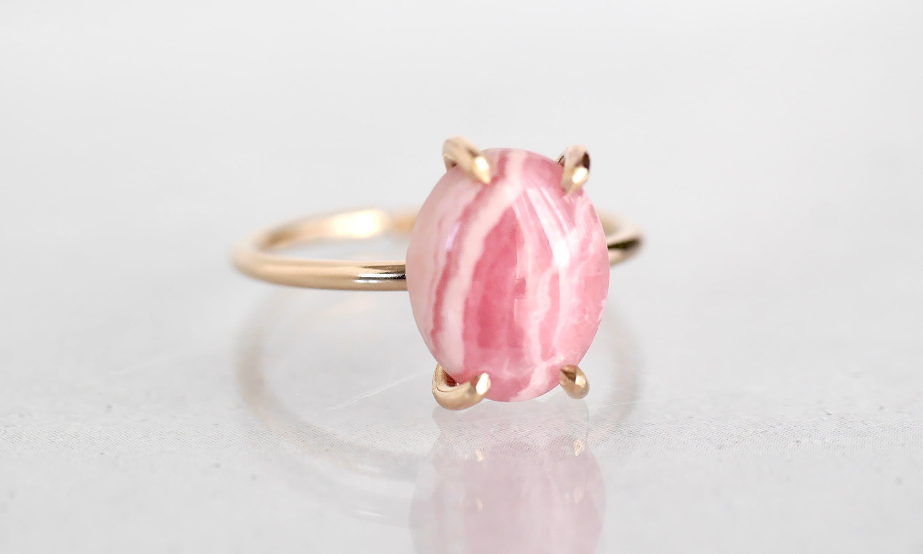 "薔薇色の人生"を象徴する、インカローズのオープンリング ········································································ ラナチュールでは、金属アレルギーに配慮し すべてのジュエリーに14kgf素材を使用しています 厳選されたルースを使い一つ一つ手仕事で仕上げた 他にはない、特別な一点物の輝きをお楽しみ下さい ········································································ 繊細なレースを思わせる模様が広がる やわらかなサーモンピンク色のインカローズ 肌にすっと溶け込むように馴染み 装いに自然な華やかさを添えてくれます 指のサイズは、季節や体調によって わずかに変わることもあります オープンデザインのため そうした自然な変化にもやさしく対応します 同じ模様は二つとない 自然が長い時間をかけて描いた小さな景色 手元でそっと輝く 世界にひとつのインカローズリング その表情を、どうぞお楽しみください \\【約9号〜13号】ご希望サイズをご選択下さい// 変形防止の為、予めご希望のサイズに調整をしてから 発送いたします。お手元に届いてから微調整も可能です インカローズピアス はこちら https://lanaturejoie.theshop.jp/items/135095405 インカローズイヤーカフ はこちら https://lanaturejoie.theshop.jp/items/97450306 〈素材〉14kgf 〈パーツ〉インカローズ 10×8mm 〈サイズ〉約9号-13号 ✴︎インカローズは非常にやわらかく、デリケートな宝石ですのでお取り扱いには十分ご注意ください。 ✴︎サイズ調節は買った時に1度行いそのサイズを維持することをおすすめします ✴︎ろう付けをしておりますので継ぎ目があります 磨きをかけていますが僅かに跡が残る事があります ✴︎重たい物を持ったり、強い衝撃などによりリングが変形する事がありますのでお取り扱いは優しく丁寧にお願い致します 【有料ギフトラッピング】 上品なグレーのギフトボックスにお入れし、リボンをかけてラッピングいたします。ご希望の方はオプションよりご選択下さい。※リボンの種類は予告なく変わることがあります。