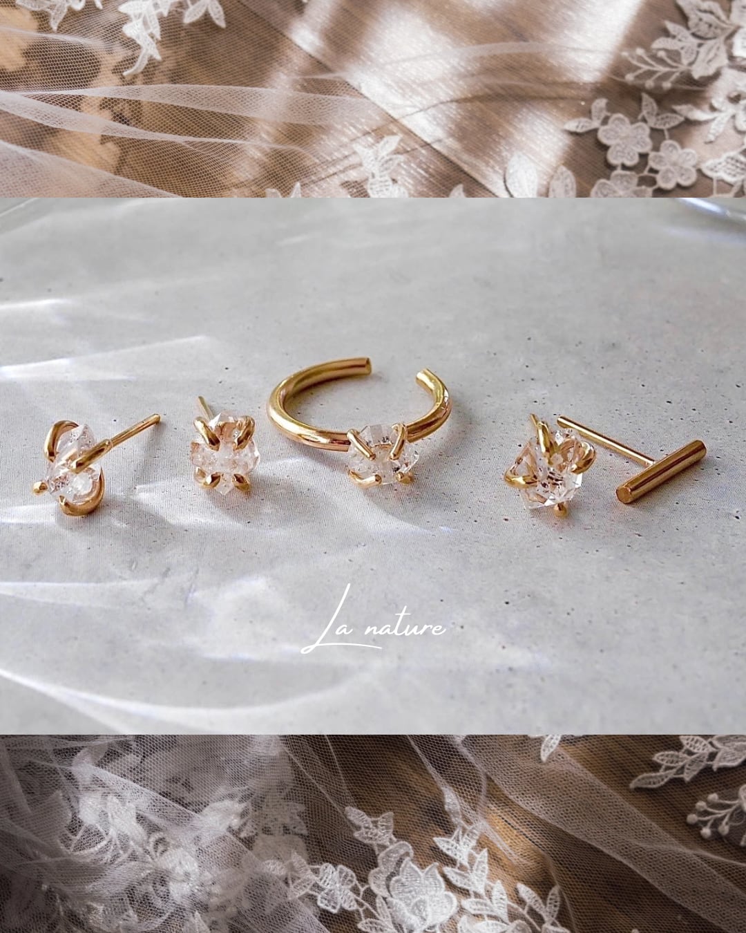 ハーキマーダイヤモンド プチ ピアス 14kgf