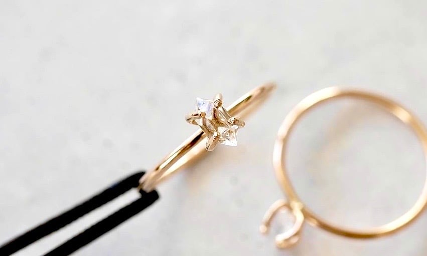小さなハーキマーダイヤモンドが煌めくリング ········································································ ラナチュールでは、金属アレルギーに配慮し すべてのジュエリーに14kgf素材を使用しています 厳選されたルースを使い一つ一つ手仕事で仕上げた 他にはない、特別な一点物の輝きをお楽しみ下さい ········································································ ハーキマーダイヤモンドは、ニューヨーク州 ハーキマー地方で採掘される 結晶の両端が尖った形が特徴的な美しい水晶 原石の状態から透明度が高く 研磨なしでダイヤモンドの様な強い輝きを放つ事から ハーキマーダイヤモンドと呼ばれるようになりました 採掘される地層は約5億年前 ニューヨークがまだ海の底だった頃 非常に高温高圧の地下で成長するので 石によっては黒い粒の様な内包物があります その内包物も古代のものだと思うと より一層魅力を感じる天然石です \\ 9号・11号・13号// ご希望サイズをご選択下さい その他のサイズについてもオーダーを承っておりますので、InstagramのDMよりお気軽にお問い合わせ下さい ハーキマーダイヤモンドピンキーリング https://lanaturejoie.theshop.jp/items/62592409 ハーキマーダイヤモンドプチピアス https://lanaturejoie.theshop.jp/items/108033806 〈素材〉14kgf 〈パーツ〉ハーキマーダイヤモンド 約4×3mm 〈サイズ〉9号 11号 13号 ●ろう付けをしておりますので継ぎ目があります。 磨きをかけていますが多少キズが入る事がありますので予めご了承ください。 ●重たい物を持ったり、強い衝撃などによりリングが変形する事があります。天然石が取れてしまう恐れがありますのでお取り扱いは優しく丁寧にお願い致します。 ラナチュールリング 14kgf 14kgf リング 指輪 金属アレルギー対応 ハーキマー 原石リング ハーキマーダイヤモンド 原石アクセサリー 内包物 ラナチュール 一点もの ゴールドフィルド 天然石 パワーストーン 水晶 9号 11号 13号 【有料ギフトラッピング】 シンプルで上品なグレーのギフトボックスにお入れして ラッピングいたします。ご希望の方はオプションよりご選択下さい。※リボンの種類は予告なく変わることがあります。