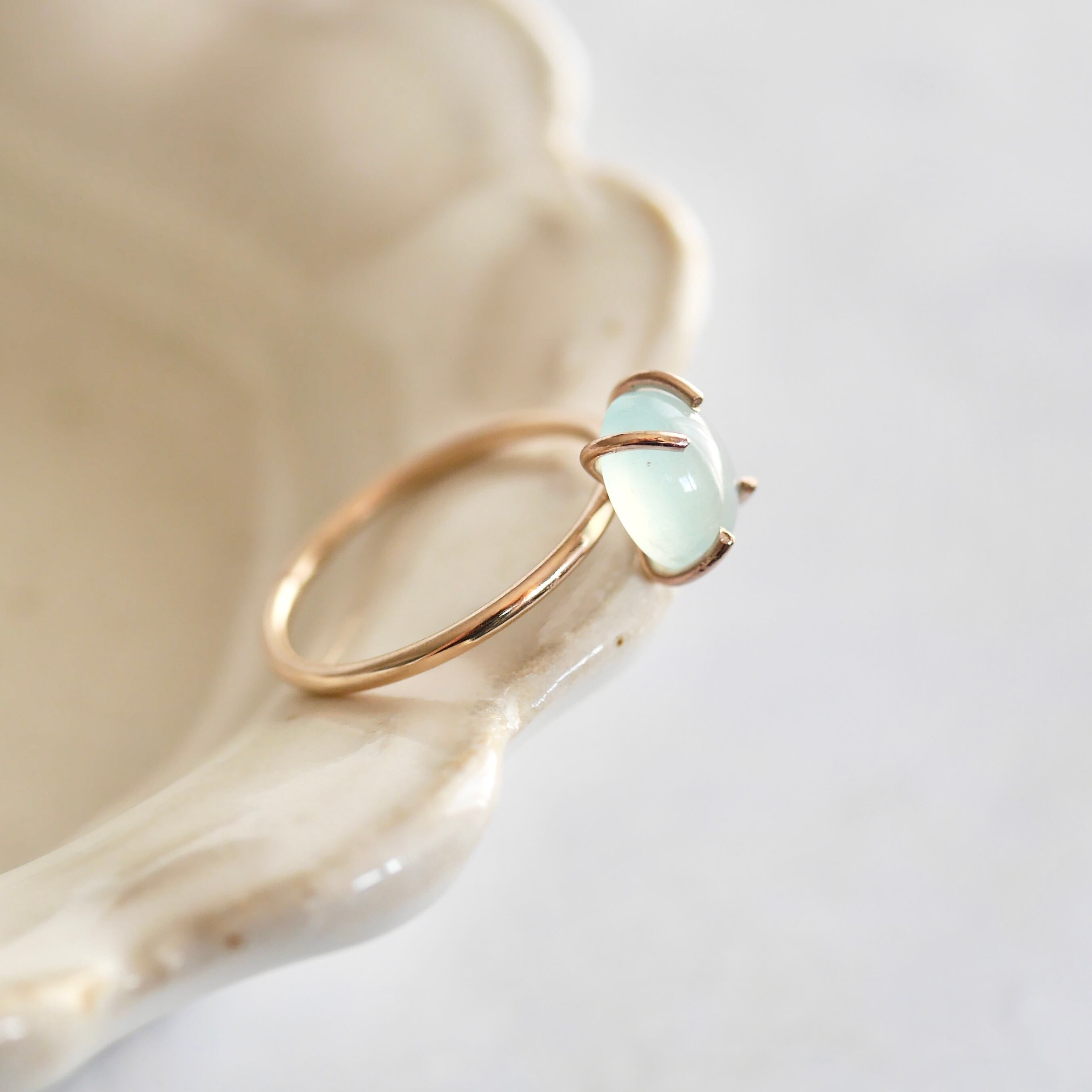 アクアプレーズ 天然石リング カルセドニー 希少石 14kgfジュエリー ハンドメイドジュエリー 一点物ジュエリー レディースリング お守りジュエリー ギフトプレゼント