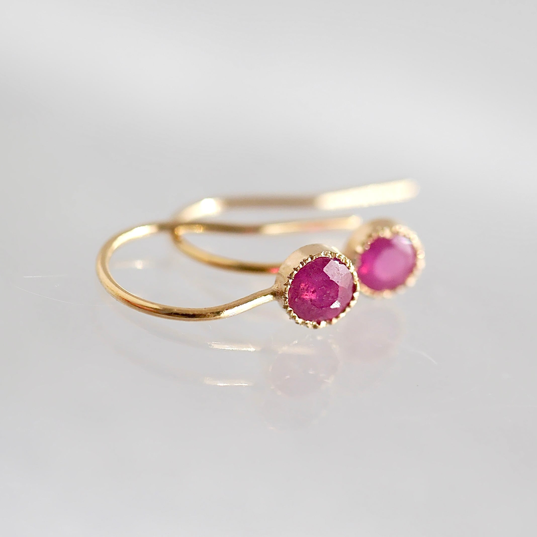 14kgfピアス 金属アレルギー対応 天然石ピアス ルビー ルビーピアス 誕生石ピアス 一点もの ハンドメイドジュエリー 彫金 パワーストーン お守りジュエリー lanature ラナチュール