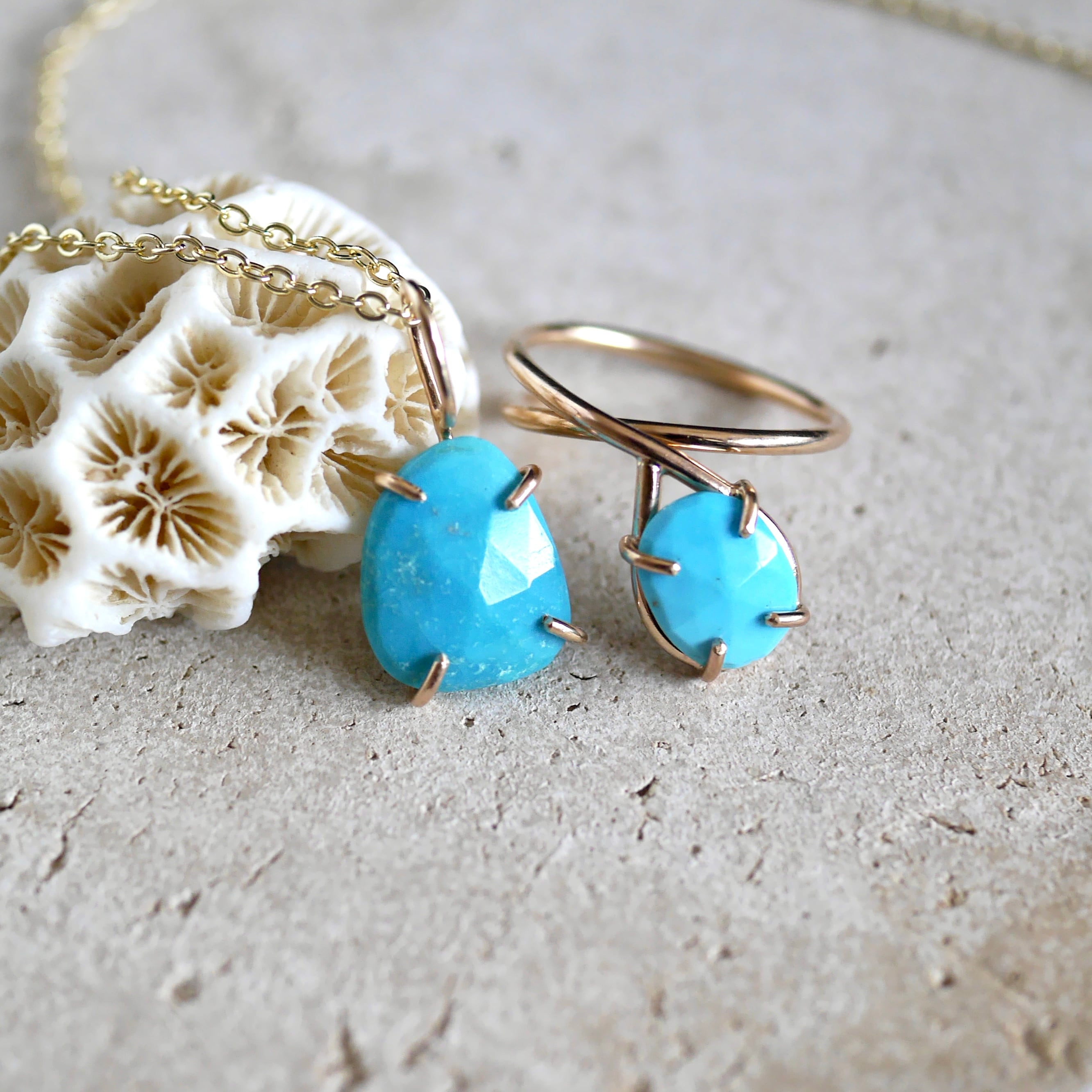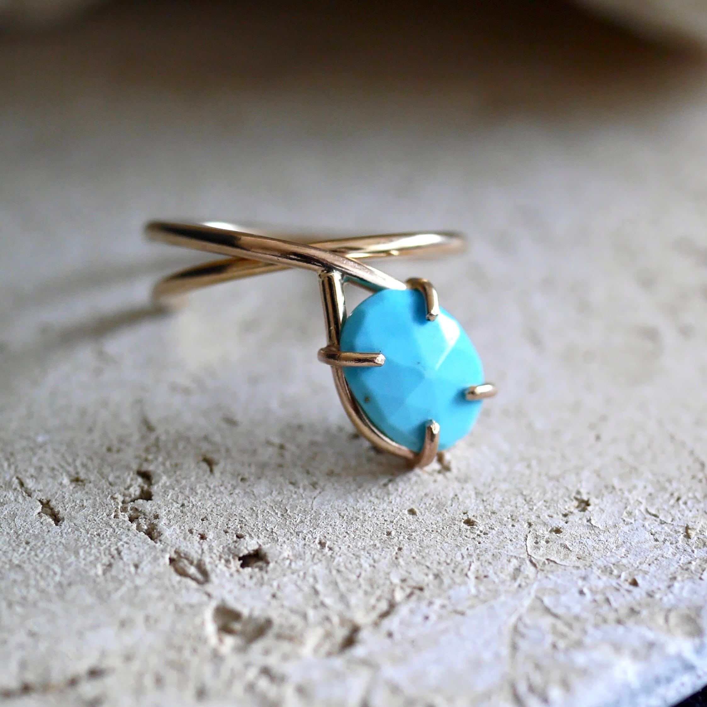 スリーピングビューティーターコイズ オープンリング|一点物 14kgf 天然石ジュエリー 希少石