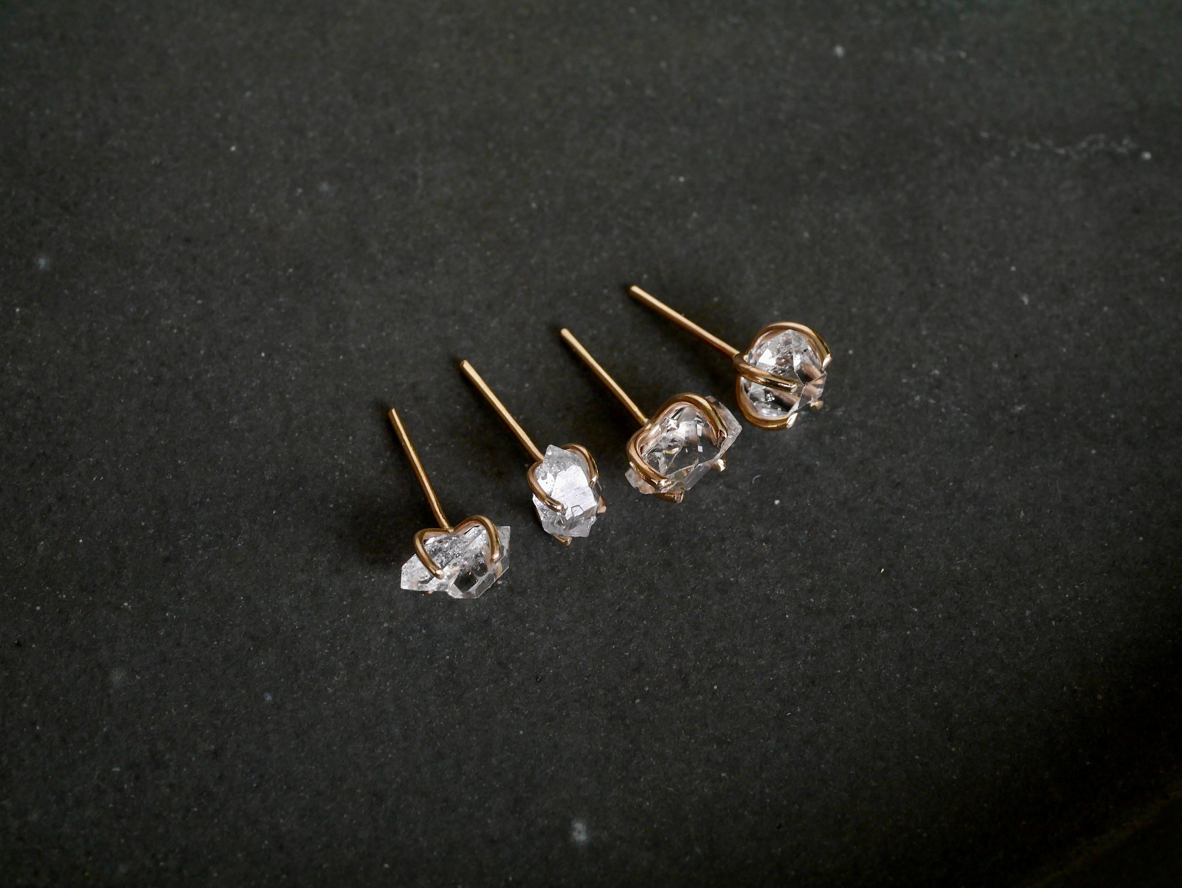 ハーキマー ハーキマーダイヤモンド 一粒 一石 一点もの 彫金 スタッドピアス lanature ラナチュール