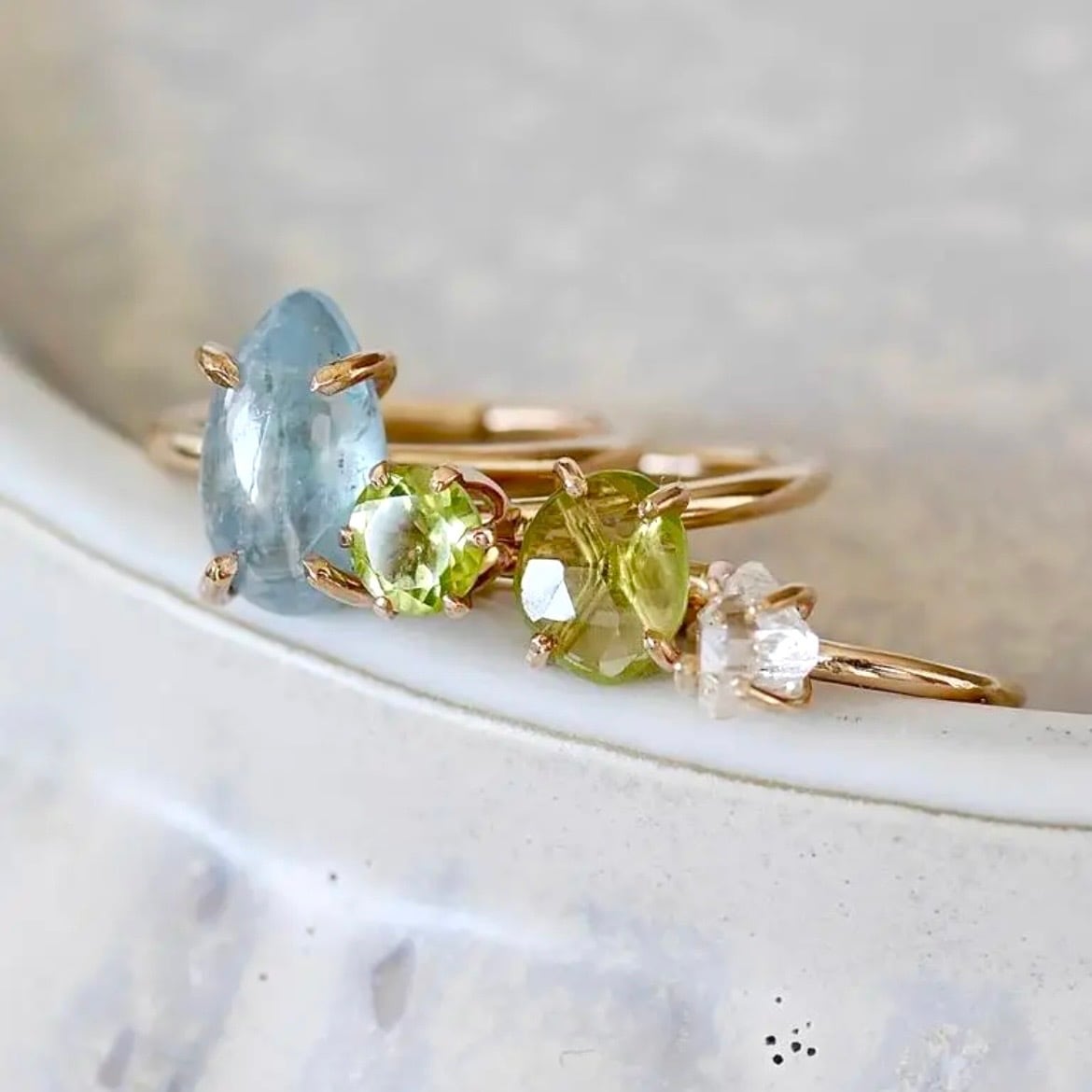 ●重たい物を持ったり、強い衝撃などによりリングが変形する事があります。天然石が取れてしまう恐れがありますのでお取り扱いは優しく丁寧にお願い致します。