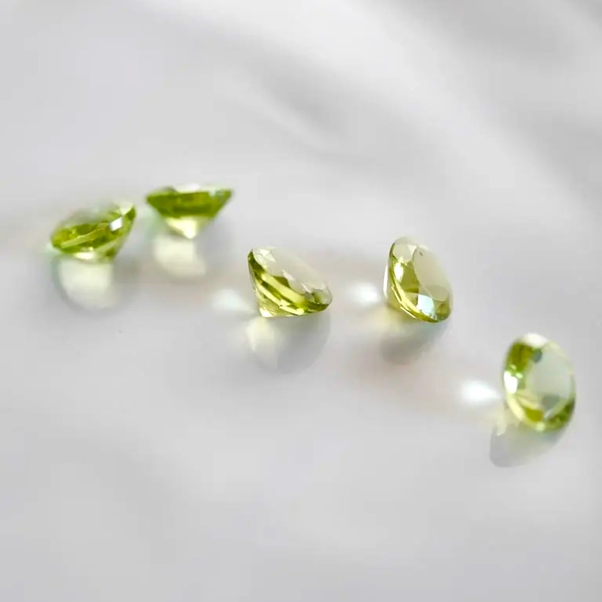 幸福や繁栄を象徴するペリドットの鮮やかな輝きと